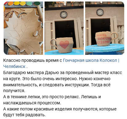 @Марина ВолковаВ прошлом году моя дорогая крестница Лера Найданова сделала мне шикарный подарок в гончарную мастерскую Гончарная школа Колокол | ЧелябинскСказать что мне понравилось, это ничего не сказать. Я была в полном восторге, это такой релакс😍 моим наставником на мастер-классе была очаровательная девушка Полина, которая очень понятно и доступно приоткрыла занавес в мир гончарного искусства и из кусочка глины у меня родился вот такой молочник, пока только он в сыром незаконченном виде. Еще будет сохнуть, обжигать его будут и покроют глазурью😉Как будет готов обязательно покажу окончательный результат😊