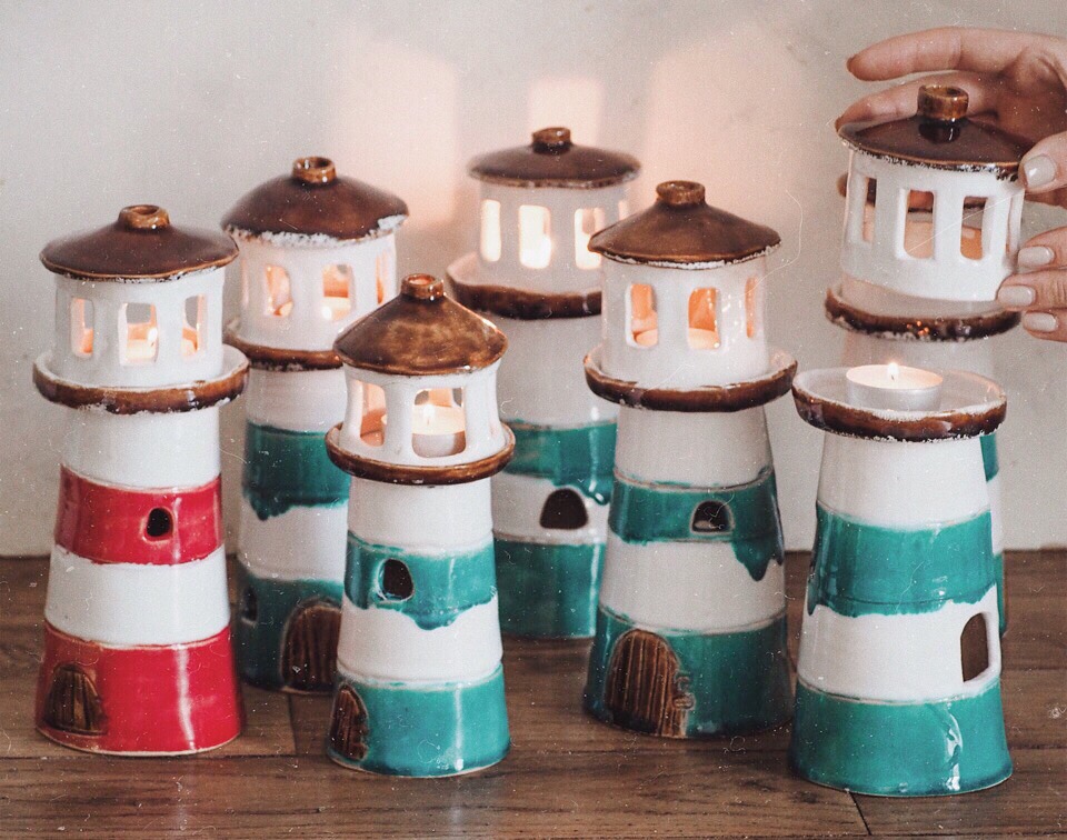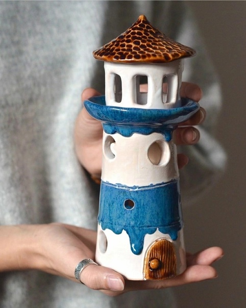 Осталось выбрать цвета глазури и дать изделию высохнуть и пройти обжиги. Свет в маяке - это настоящее чудо.