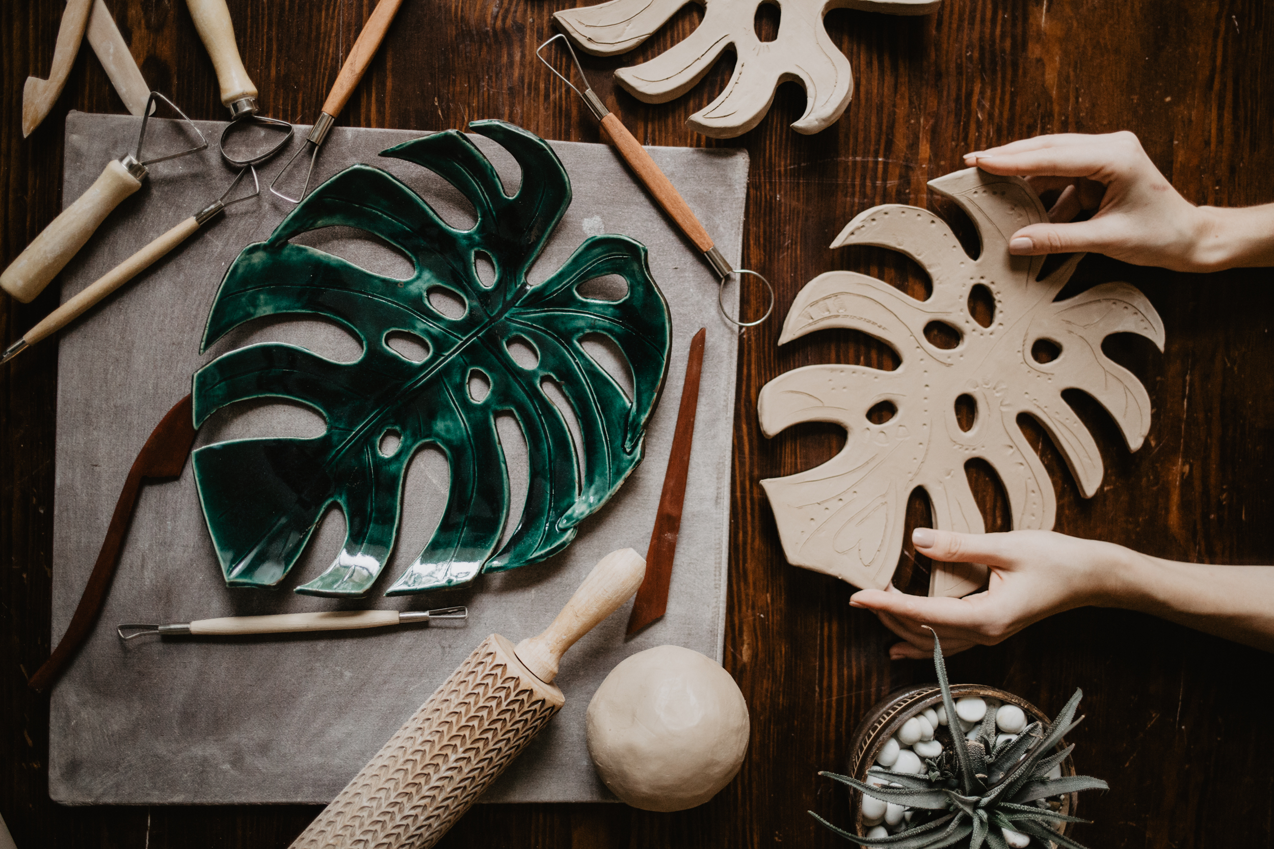 Пока вы творите, время пролетает незаметно. И хотя процесс ручной лепки достаточно простой, вам интересно каждую минуту. За время занятия можно налить себе ароматный чай и обсудить с преподавателем множество шуток и легенд, связанных с самим растением монстеры. А так же - почему этот узорный лист так всем полюбился, и как вы его будете использовать дома.